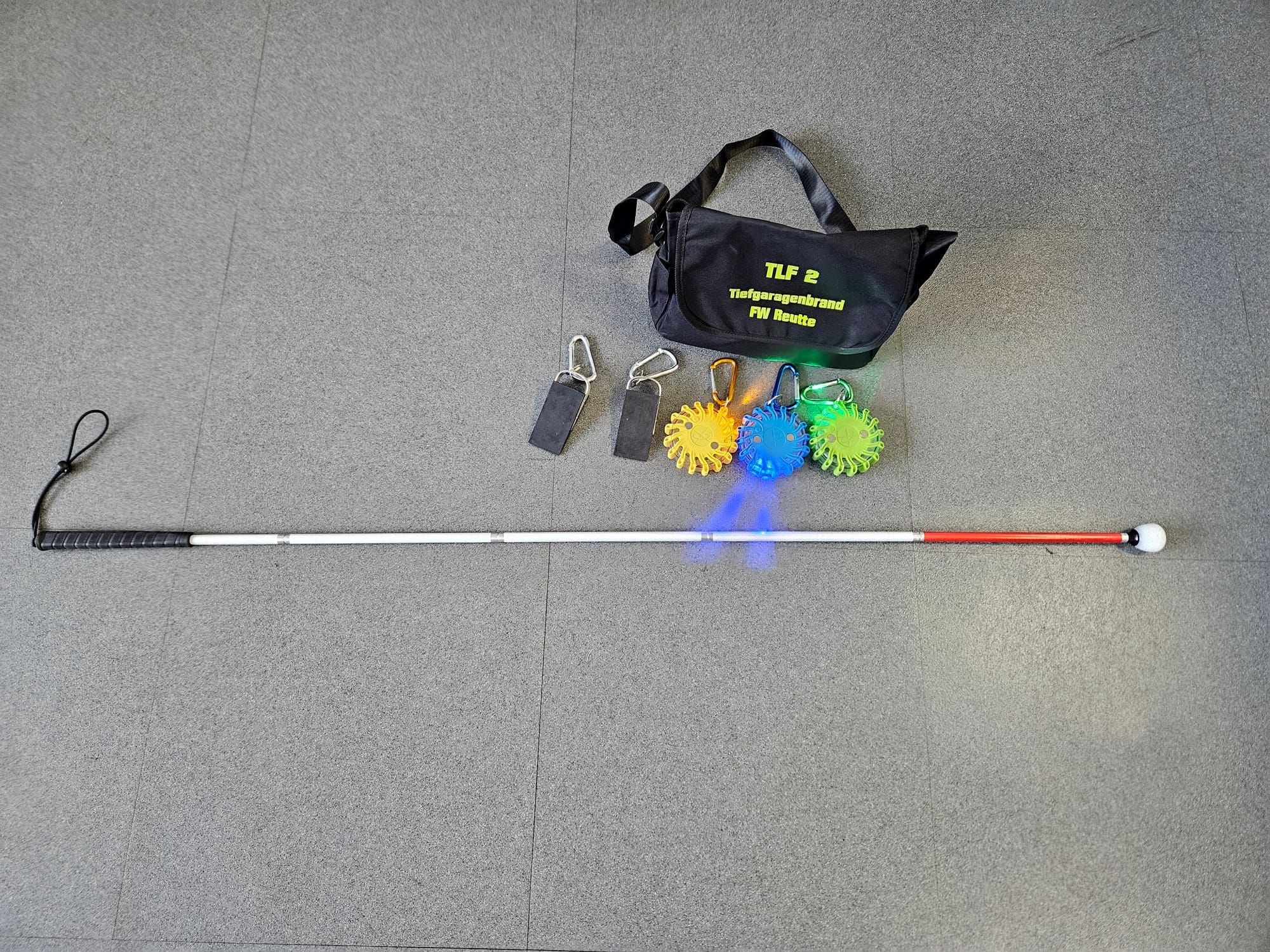 Das Set ist auf den Tanklöschfahrzeugen TLF 1 und TLF 2 sowie dem LF verlastet und wird gezielt bei Einsätzen in unübersichtlichen und schlecht einsehbaren Tiefgaragen eingesetzt. Ziel ist es, den Einsatzkräften eine schnelle Orientierung sowie ein strukturiertes und sicheres Absuchen nach Brandherd und vermissten Personen zu ermöglichen.