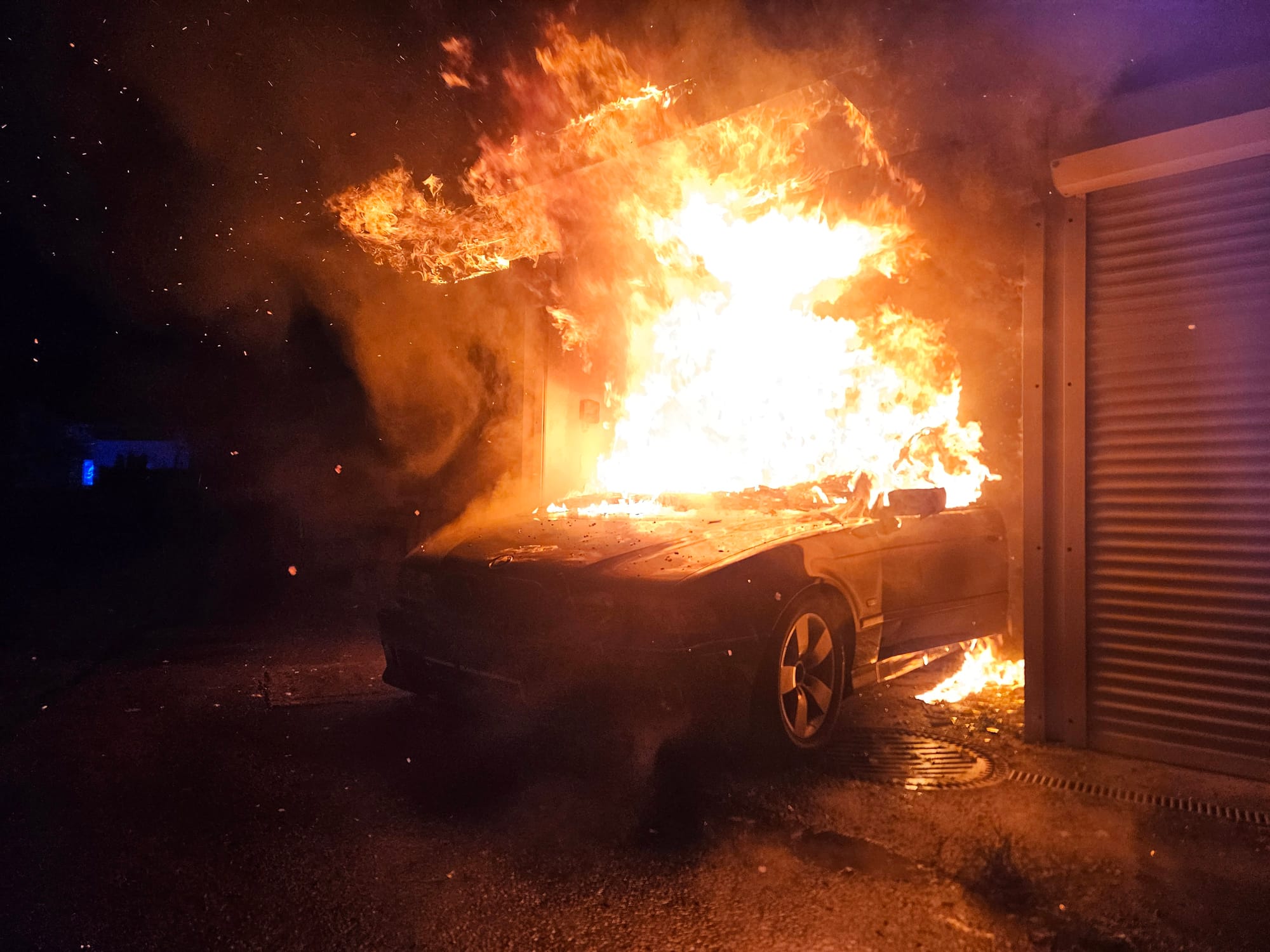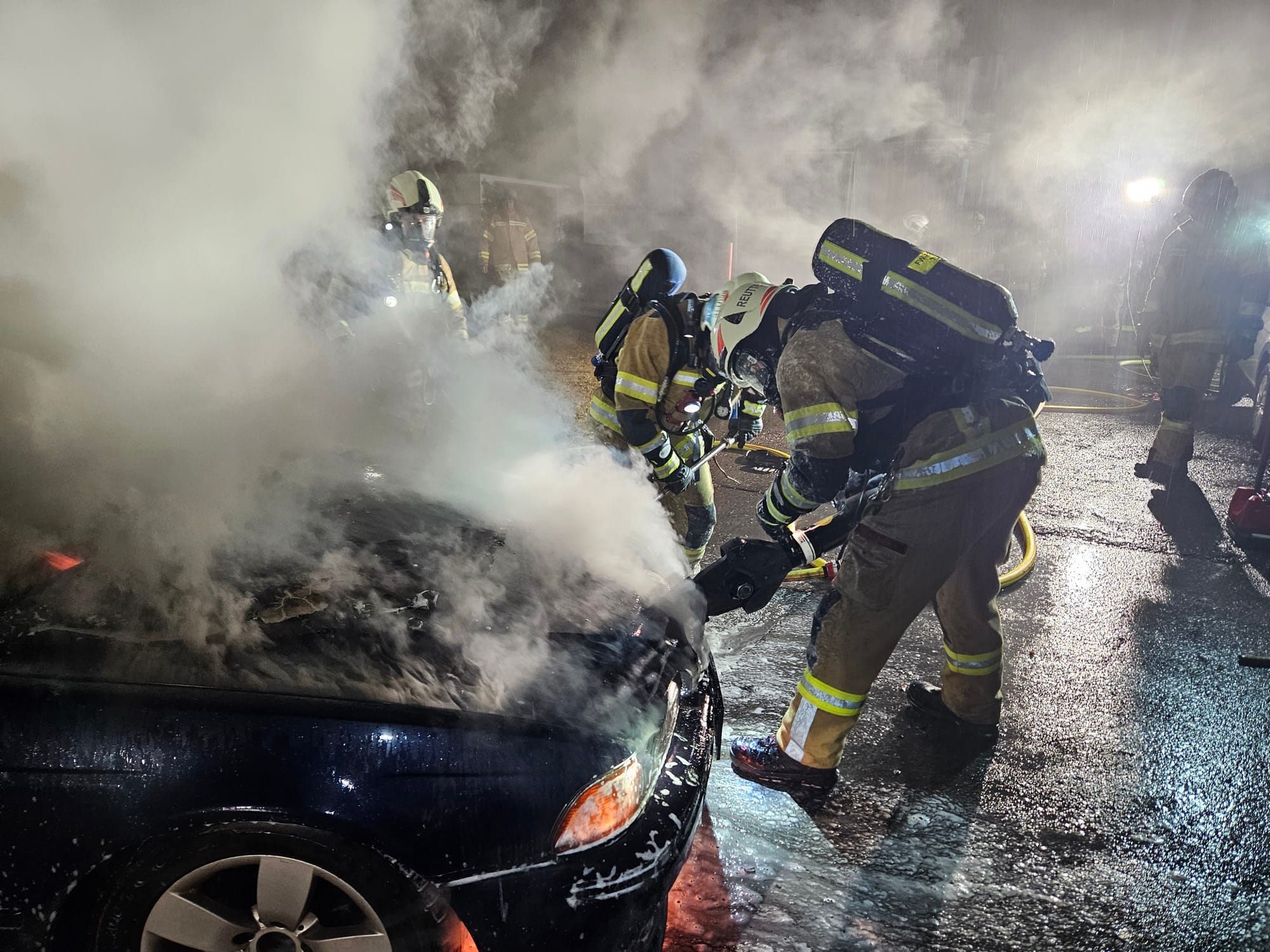 Beim Eintreffen der Feuerwehr stand das Fahrzeug bereits in Vollbrand. Durch das rasche Eingreifen der Atemschutztrupps konnte der Brand schnell unter Kontrolle gebracht und ein Übergreifen auf angrenzende Gebäudeteile verhindert werden.