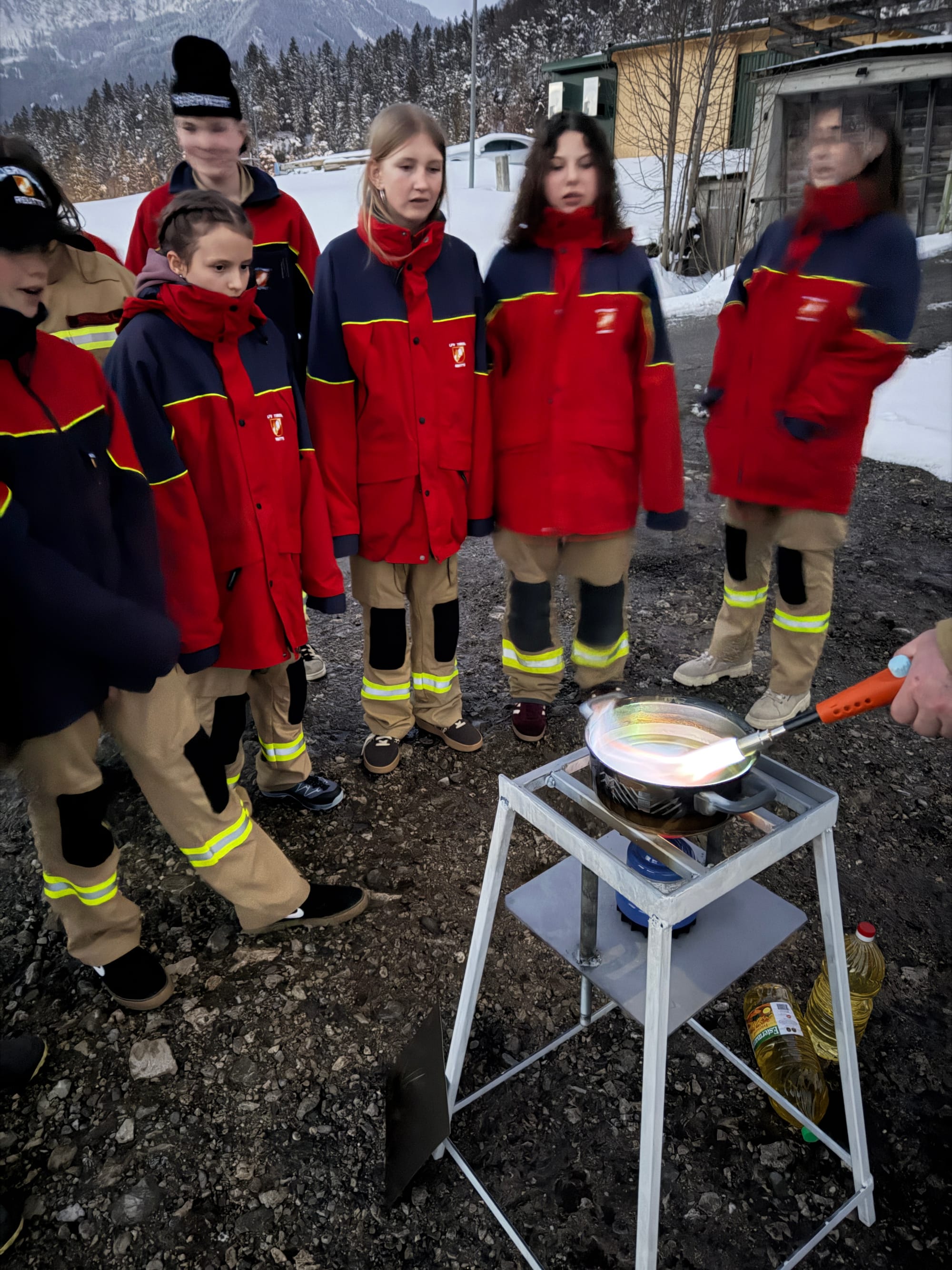 Heute Abend stand bei der Jugendfeuerwehr Reutte eine spannende Probe zum Thema Fettbrand auf dem Programm.