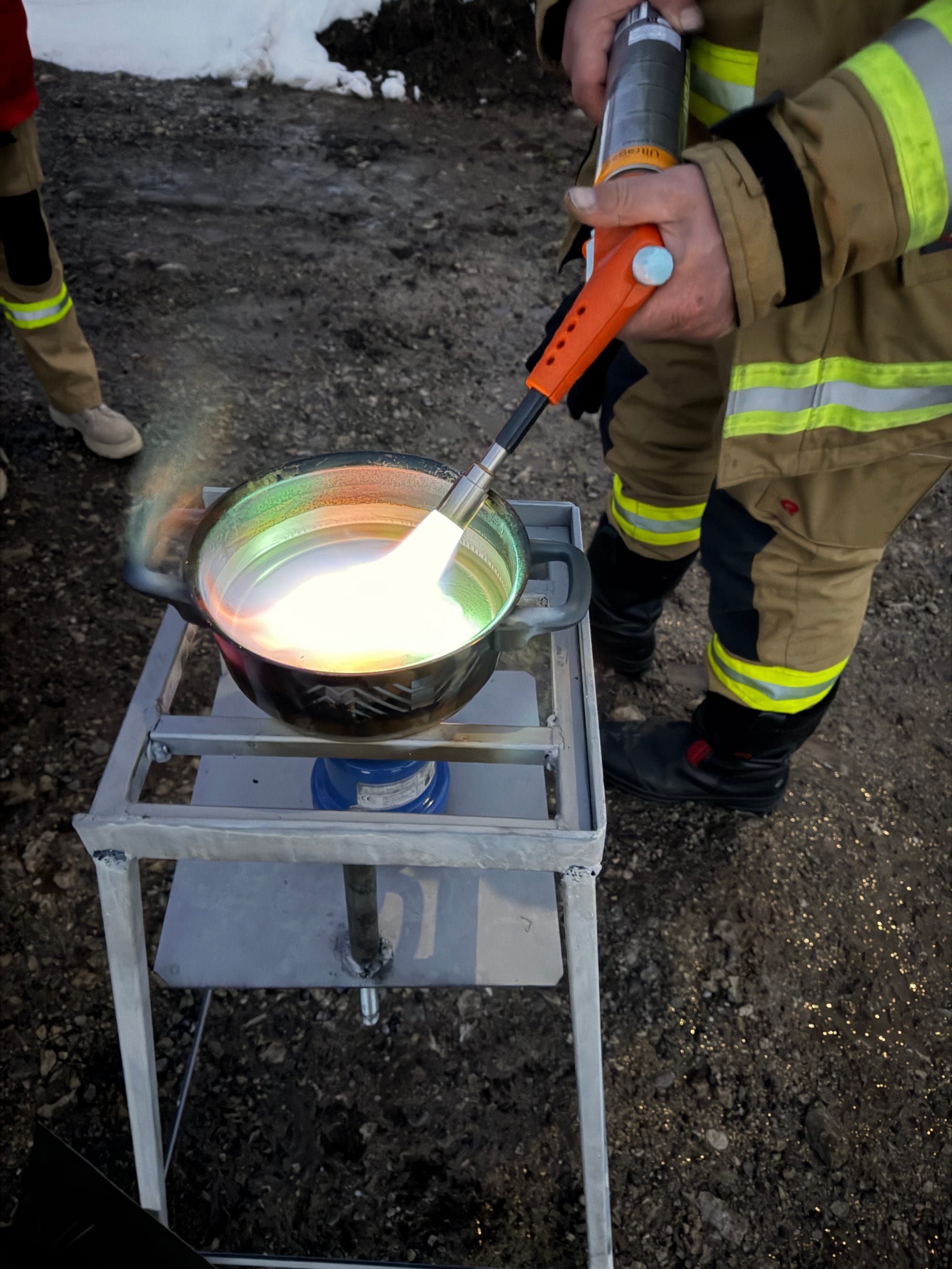 Im Mittelpunkt stand ein anschauliches Experiment, bei dem gezeigt wurde, was passiert, wenn ein Fettbrand falsch gelöscht wird. So konnten unsere jungen Mitglieder wichtige Grundlagen verstehen und ihr Wissen im sicheren Umgang mit solchen Situationen erweitern.