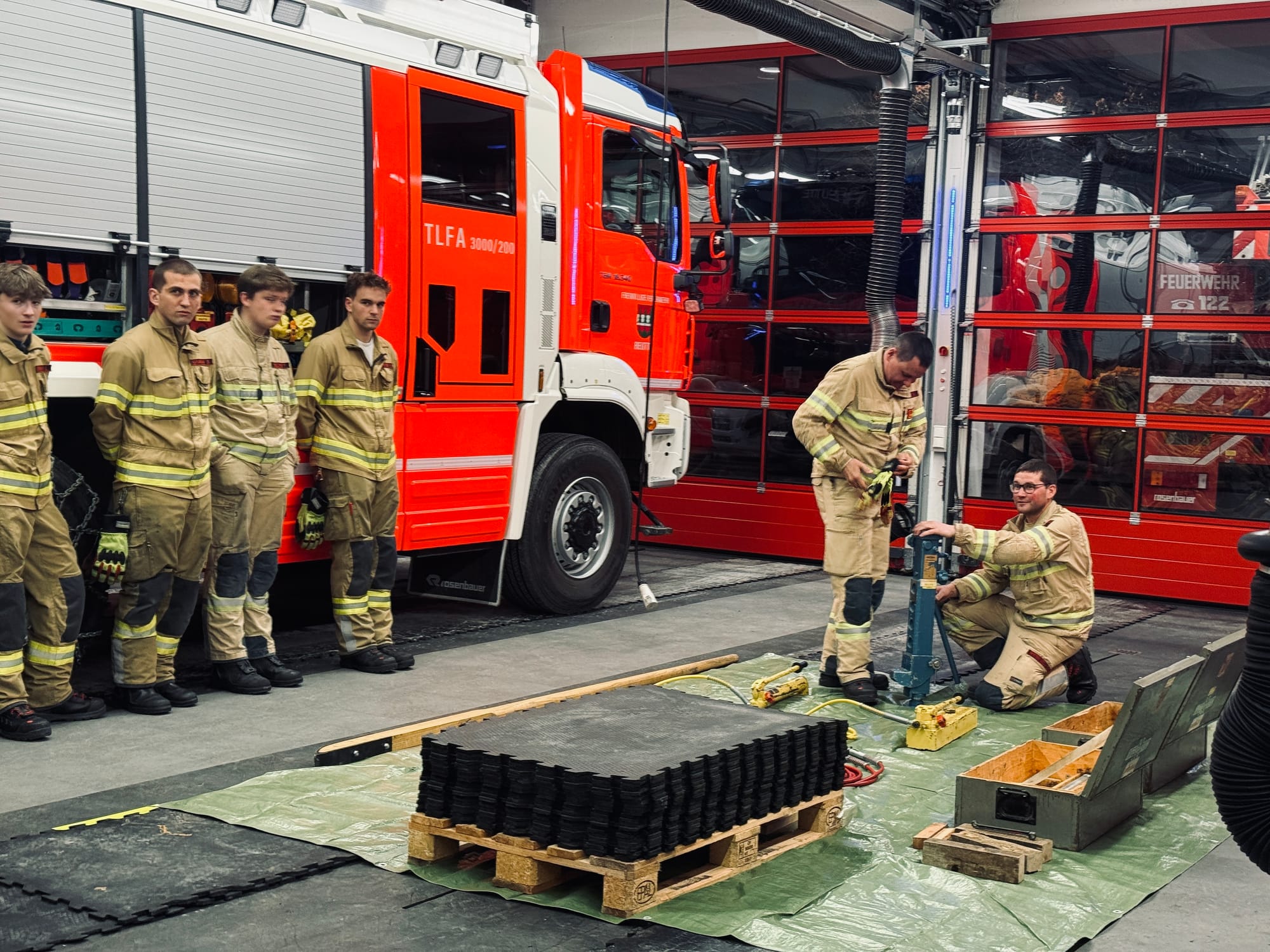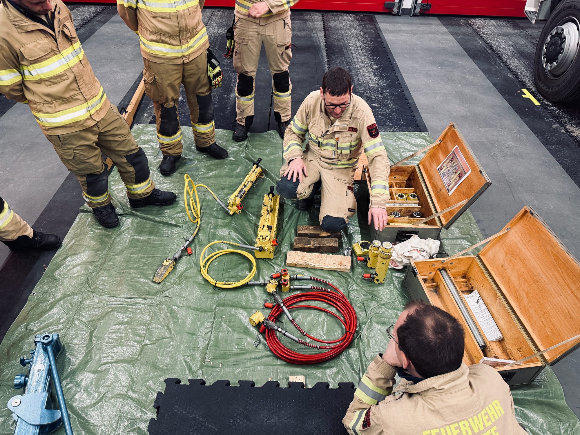 Dabei konnten wir den Hebekissensatz mit 8 bar und 1,5 bar, den hydraulischen Hebesatz des SRF (Schweres Rüstfahrzeug) sowie einen Hebebaum und den Hydraulikheber (Büffel) praxisnah einsetzen.