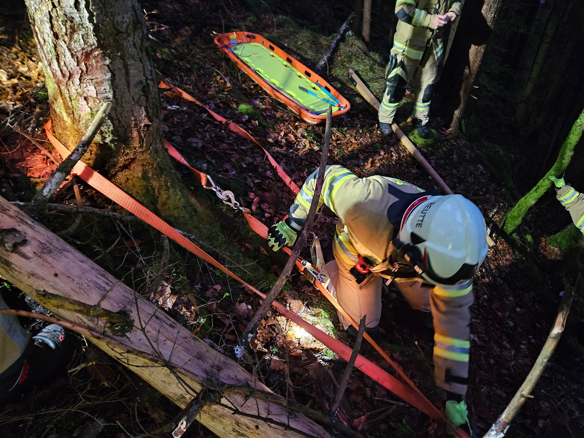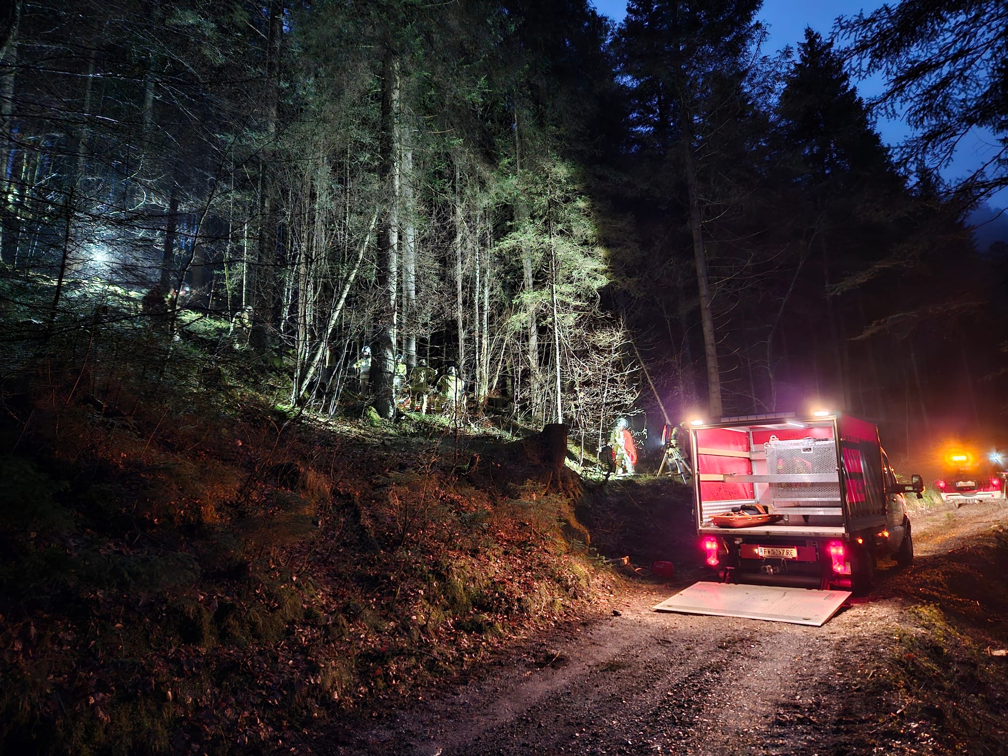 Aufgrund der schwierigen Geländeverhältnisse war ein direktes Anfahren mit schweren Einsatzfahrzeugen nicht möglich. Daher wurde ein Pendelverkehr mit LAST-1 und LAST-2 eingerichtet, um Mannschaft und Ausrüstung effizient zur Einsatzstelle zu transportieren.