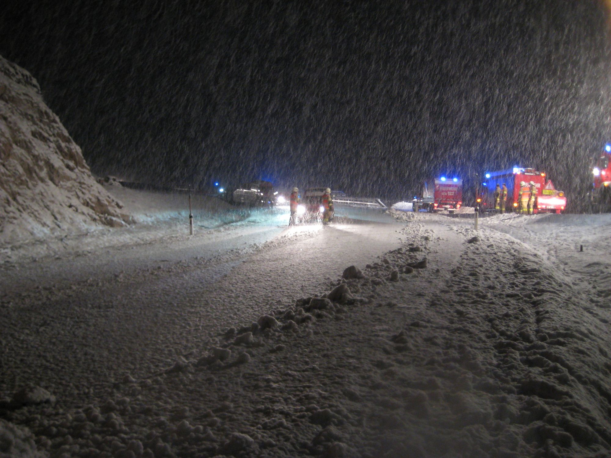 Dabei kollidierten die beiden Fahrzeuge derart unglücklich, dass es bei dem LKW zu einem Abriss des linken Fahrzeugtanks kam welcher sich in Folge am Fahrbahnrand komplett entleerte. Personen kamen nicht zu Schaden. Aufgrund der Verunreinigung musste der Fahrbahnrand abgegraben und das kontaminierte Erdreich entsorgt werden. Die B179 war im Unfallbereich zeitweise einspurig befahrbar bzw. musste immer wieder aufgrund der Berge- und Aufräumungsarbeiten komplett gesperrt werden. Gegen 00.15 Uhr konnte der Einsatz beendet werden. Im Einsatz standen die Freiwillige Feuerwehr Reutte mit 18 Mann und 5 Fahrzeugen, eine Streife der Polizei, der Journaldienst der BH-Reutte, das Abschleppunternehmen Hundertpfund sowie die Firma Transporte Koch.